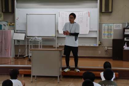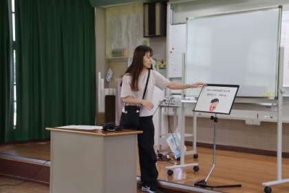 校長の話の後は、生徒指導担当から夏休みの過ごし方、保健担当からは、タブレットの上手な使い方について、話がありました。