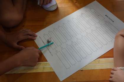 夏休み中に参加してくれた児童がたくさんいたこともあり、短い時間でしたが、予想を超える多くの国名をつなげて記入できたグループが多く、驚きました。