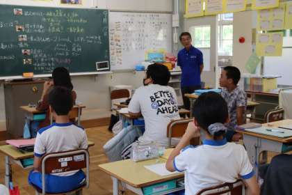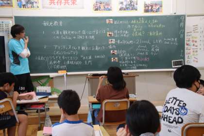9月13日(金)、旭観光協会の会長さんにお越しいただき、5・6年生が小渡地区の観光について学びました。