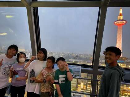 京都駅ビルの一番上まで行き、いろいろな場所で写真を撮って楽しみました。
