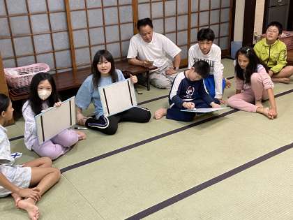 旅館で入浴を終えた6年生は、敷島小との交流会を行いました。