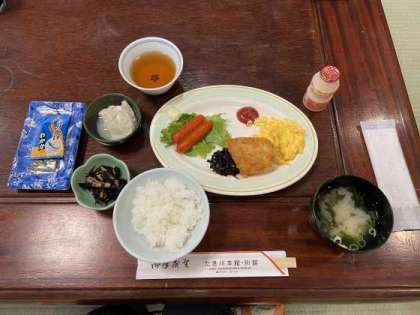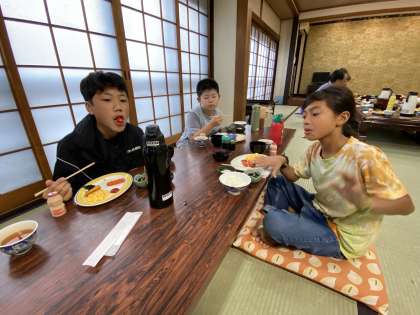 朝6時の起床で目覚めた6年生は、身支度を整えてから、朝食をいただきました。