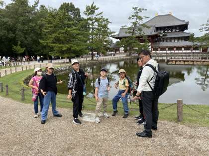 東大寺に到着すると、鹿がどこにいるのかとみんな探していました。見つけた鹿の多さに驚きながら、大仏殿に入りました。大仏の大きさにみんなびっくりしていました。