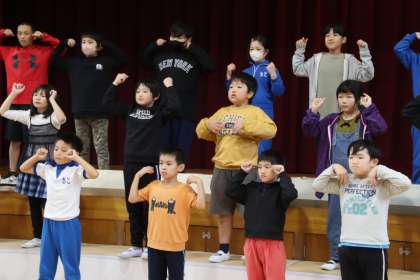 学習発表会で合唱を発表することになり、Let's sing a song.を練習しています。そこで今年も10月29日(火)に、米谷先生にお越しいただき、全校児童の合唱を指導していただきました。合唱を行う際の姿勢や口の開き方、曲に対する気持ちの入れ方などをご指導いただきました。本番にどんな合唱が披露されるか、楽しみです。