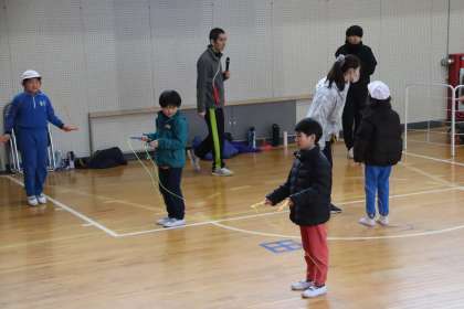 1月10日(金)、今年度も日本なわとびアカデミーの粕尾将一さんにお越しいただき、PTA教育講演会を行いました。バス通学の児童が大半を占める本校の実情を踏まえ、手軽に体力の向上できるなわとびを親子で楽しむため、縄跳びの技や楽しく続く方法などを、講師の先生に実演していただきながら、教えていただきました。この講演会は大変好評で、今回で4回目となります。今後も、PTAで協議をしながら、楽しい講演会ができるようにしていきたいと思います。