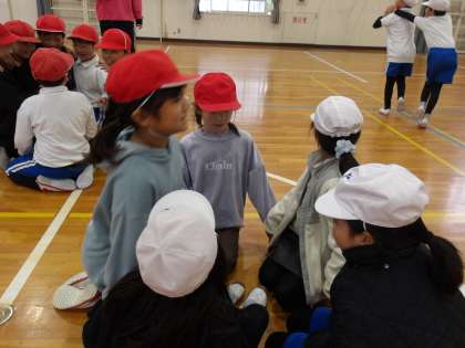 3年生は、ドッジボールや道徳の授業に入りました。4年生は百人一首やドッジボールを行い、交流を深めました。「小渡小の子にボールを渡してあげて」など、平和小の子たちの優しい声掛けに、心が暖かかくなりました。