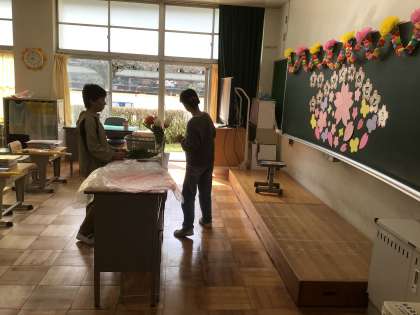 明日の入学式に向けて、5・6年生の児童11名が準備を行ってくれました。