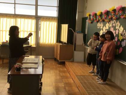 新2年生から6年生まで、22名のお兄さん、お姉さん、立派な入学式の姿でした。担任の先生と新しい1年のスタートです。