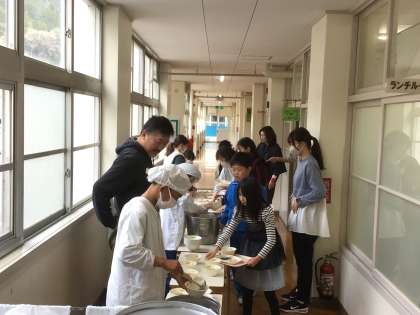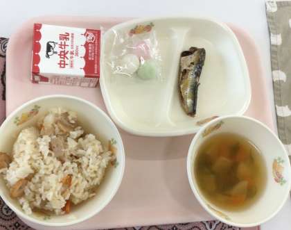 今日の献立は、お花見献立でした。ちらしずしに花見だんごもあって、色鮮やかでおいしそうです。ランチルームで楽しく食事をしました。