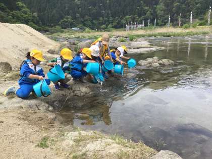【1・2年生】稚鮎の放流について 公開日 2025/04/28 更新日 2025/04/28 学校の特色ある活動 今年も矢作川漁業協同組合、小渡観光やな、矢作川研究所などの皆様のご支援のおかげで、稚鮎の放流を行いました。1000匹を超える稚鮎を1・2年生の児童7名で、「大きくなあれ」の掛け声とともに、放流しました。児童たちは、元気な稚鮎を見て、パワーをもらっていました。ありがとうございました。