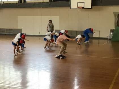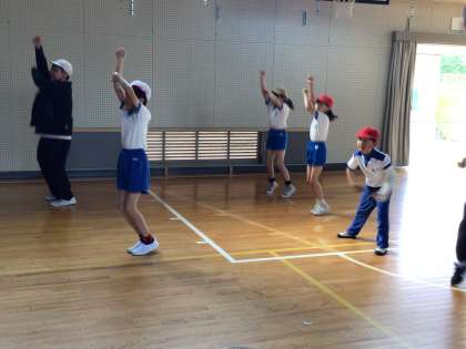 運動会の種目のひとつ、小渡っ子ソーランの練習風景です。