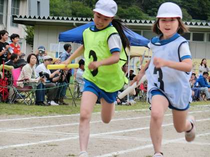 白熱の紅白リレー、結果は紅白引き分けでした!