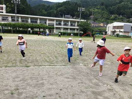 ハンターという鬼役の子たちが、追いかけっこで逃げる子たちにタッチするゲームです。