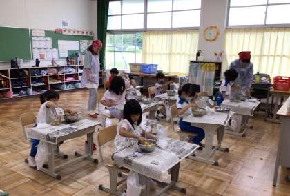 地域の方に講師に来ていただき、1・2年生が地域の方にいただいた梅の実で、梅ジュースづくりにチャレンジしました。梅の実を丁寧に拭いて、氷砂糖に挟んで漬け込みました。美味しくできるように最後におまじないの酢を加えました。ご協力いただいた皆様、本当にありがとうございます。