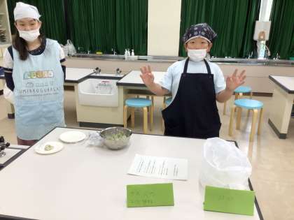 授業で育てたキュウリをつかって、ツナマヨきゅうりサラダやさんを開いてくれました。