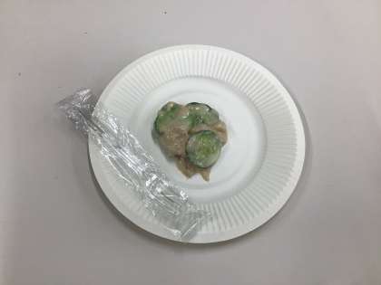 茹でたキュウリにツナを混ぜ合わせて、和風サラダにしてふるまってくれました。みずみずしいキュウリの味がとてもおいしかったです。ごちそうさまでした。
