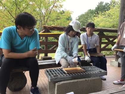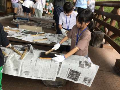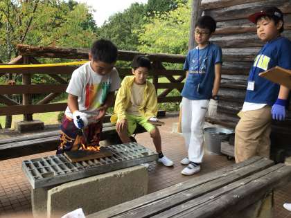 林間学校の最後は、焼杉の壁掛けを行いました。上手に作品を作ることができました。