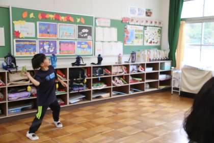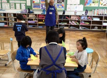 今日は、4名の講師の方をお迎えして、ものづくり教室として、紙飛行機や飛ばせる紙リングを作りました。つくったものを体育館で飛ばして、みんなで飛距離を競い合いました。最後は、トロフィももらって、大満足でした。