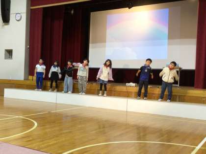 明日、9時より学習発表会を実施します。これまで学んできた成果を歌や踊り、発表や寸劇で紹介します。図工で作成した作品も展示します。地域の方によるトーンチャイムや全校児童による竹楽器の演奏もあります。ぜひお楽しみください。