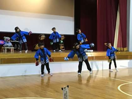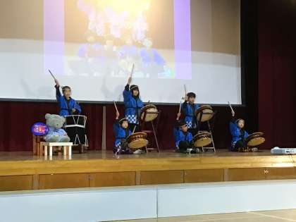 学習発表会。1・2年生はおまつりの音楽と合唱、体育で学習したダンスを発表しました。ニコニコスマイルで、太鼓の演奏や可愛らしいダンスを披露できました。