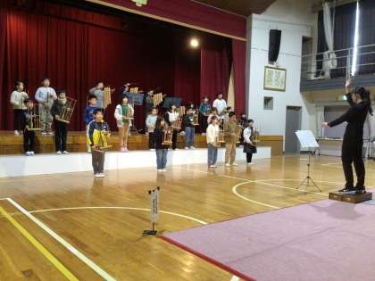 学校にボランティアで来てくださっている方を中心に、地域の方々によるトーンチャイムの合奏、全校児童による竹楽器演奏を行いました。どちらも「となりのトトロ」の曲など、素敵なメロディーを聴かせていただきました。ありがとうございました。