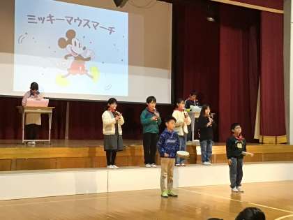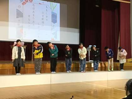 3・4年生は、国語の時間に学習した百人一首と詩で、自分の好きな和歌を紹介したり、クイズを出したりしました。また音楽の授業で練習した合唱や合奏を精一杯披露してくれました。しっかりした声とにこやかな表情で堂々と発表することができました。