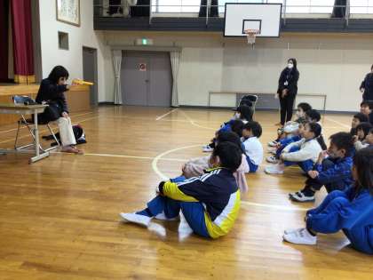 豊田市社会福祉協議会の協力で、全校で福祉実践教室を行いました。講師の方と盲導犬にきていただき、視覚障がいをもった方の生活や盲導犬の様子を伺いました。困っている方を見かけたら、まずは独り言でも周りの様子を呟くなど、自分たちにできる支援の方法について、学ぶことができました。