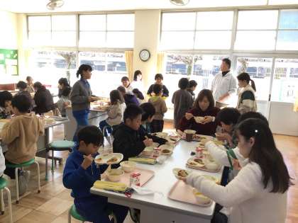 今日の給食は、冬至献立メニューでした。保健だよりでも紹介させていただいていますが、語尾に「ん」がつく食材を食べると運気が上昇するそうです。今日のメニューだと、ナンキン(カボチャ)、ダイコン、ニンジン、などでしょうか。久しぶりのランチルーム会食で、楽しく食事する事ができました。
