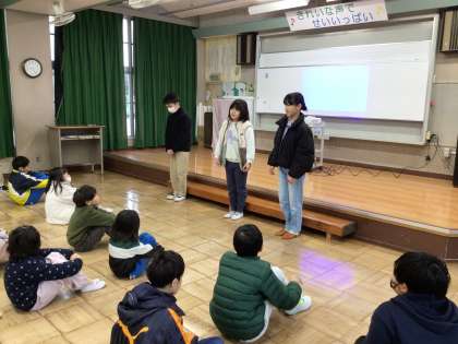 2026年の全校朝会。児童会の子が今年の抱負を述べてくれました。午年の1年、みんなで元気に仲良く活動できる年にしたいですね。