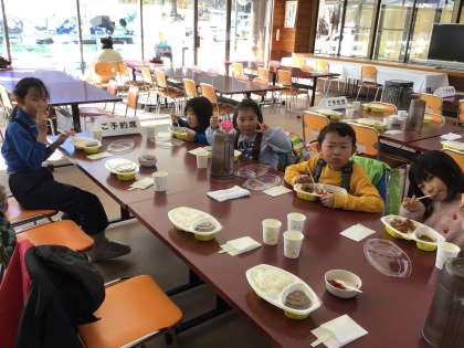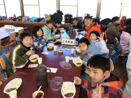 スキー教室の様子です。カレーを美味しくいただきました。