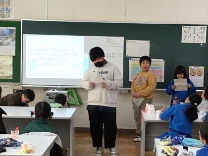 ヘルシー委員会が企画した手洗い実験の結果を発表してくれました。手洗いをせずに食材に触れた場合と水洗いした場合、石鹸で洗った場合の3つで検証してくれました。手洗いせずに、食材に触れた場合、多くの雑菌が繁殖したのに対して、石鹸で手を洗った場合は、雑菌の繁殖が見られませんでした。インフルエンザなどが流行する季節に改めて、手洗いの大切さを学ぶことができました。