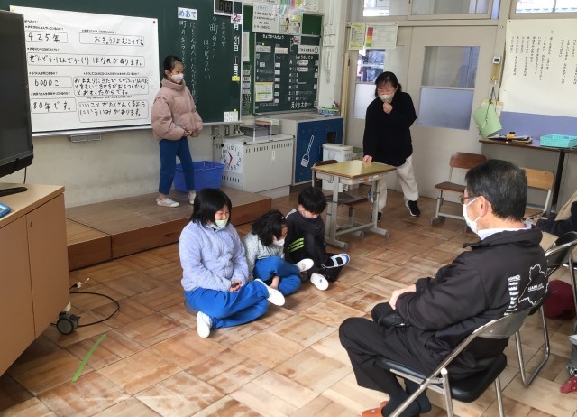 学習発表会では、1・2年生は今年1年間、たくさん町探検をさせていただき、そこでお世話になった方をお招きして、町のキラリ発表会を行いました。1年間たくさんの経験をさせてもらった感謝の気持ちを込めて発表したり、手作りのお土産を渡したりすることができました。本当にありがとうございました。