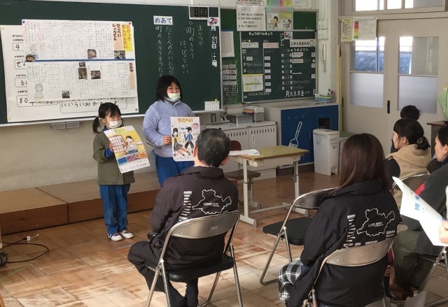 【1・2年生】授業参観を行いました(町のキラリ発表会)