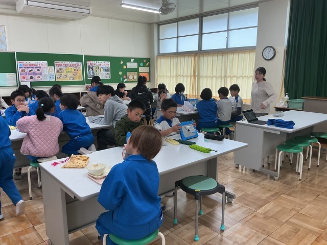 今日から、待ちにまった給食が始まりました。オリエンテーションで、配膳の仕方や昨年度委員会で児童たちが決めたおかわりの方法を確認しました。1年生の子もたくさん食べて、おかわりをする子もいました。楽しい給食の時間になりました。