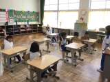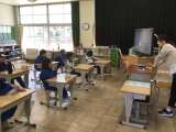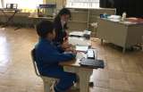 先生や友達紹介、役割分担などを行いました。学習用タブレットも使って、交流しました...