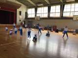 今日はあいにくの雨模様。グラウンドでの練習ができなかったので、体育館の中で、小渡...