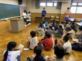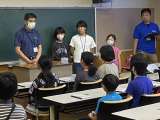 林間学校の入所式を終えて、出会いの会に入りました。 司会の小渡小学校児童の、積極...
