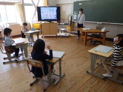 授業が始まりました。どの子にもがんばろうとする姿勢が見られます。どの教室でも、電子黒板やタブレットを使って授業が進められています。視覚的にもとても分かりやすく、子どもたちも集中して学習しています。暖かくなってきましたので、野外での体育学習では、子どもたちの元気な歓声が聞こえます。学校が元気に動き出しました。
