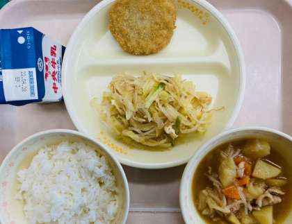 4月22日給食 公開日 2022/04/22 更新日 2022/04/22 お知らせ 本日の給食は『ごはん、牛乳、れんこんサンドフライ、ごま酢あえ、肉じゃが』です。とても美味しかったです。ごちそうさまでした!