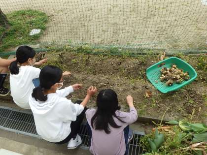 9日(月)に5・6年生が花壇の整備をしました。咲き終わったチューリップの球根を掘り集め、土をきれいにならしました。さあ、次はどんな花を植えようかな?
