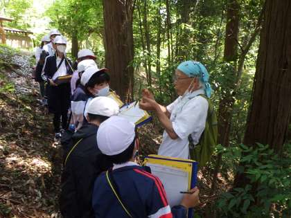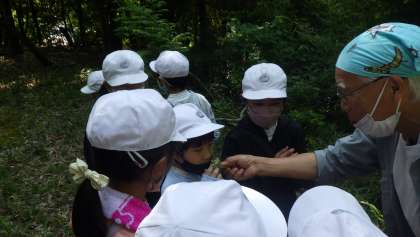 19日(木)に春の自然観察会を行いました。足助支所森林課の北岡明彦先生を講師としてお迎えし、がんばり山に生えている植物について教えていただきました。先生は、おいしい味のする葉や、さわるとふわふわして気持ちの良い葉など、子どもたちが興味をもつことができる植物をいろいろ紹介してくださいました。秋にも自然観察会を行う予定です。