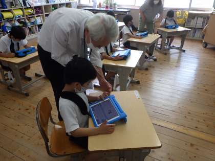 3日(金)にICT支援員の成瀬さんからタブレットのいろいろな使い方を教えていただきました。低学年は、Teamsの使い方を、中・高学年は撮った動画のアレンジの仕方などを教えていただきました。低学年はTeamsで友達からのメッセージが来ると声を上げて喜んでいました。これからもタブレットを積極的に使って、いろいろな学習に役立てていきましょう。