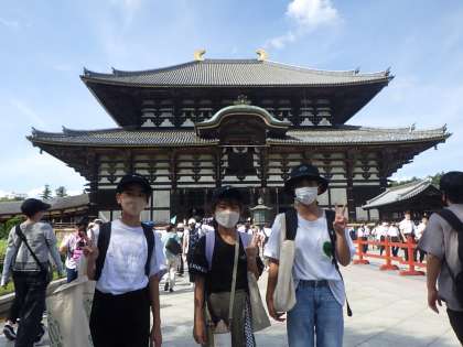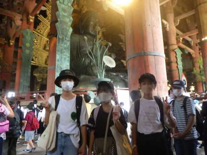 昼食後、奈良公園に向かいました。東大寺では、早くも多くのシカの出迎えにあいました。修学旅行生も大変多くいました。東大寺の廬舎那仏坐像(通称奈良の大仏様)を見上げて、子どもたちはどんな思いをもったでしょうか。
