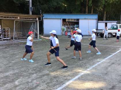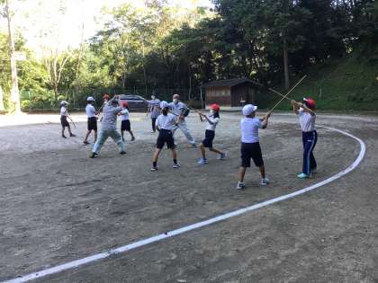 講師をお招きして棒の手練習をしました。二人一組で、 棒と太刀を使って練習しました。