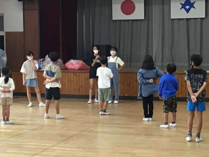 応援の練習が始まりました。赤組、白組に分かれて、上級生が中心になって応援に仕方について説明が行われていました。