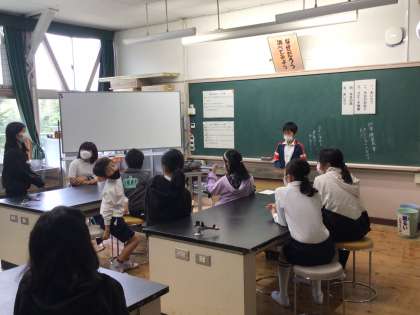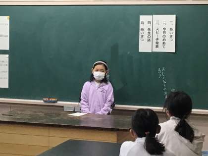 4〜6年生は理科室でスピーチを行いました。運動会のことやお墓参りのことが話題となっていました。