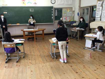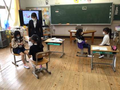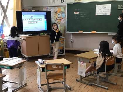 この日、2年生の教室で算数の研究授業が行われました。かけ算を使って問題を解く内容でしたが、児童が先生役をするリーダー学習が実践されていました。立派にリーダーを務めていました。