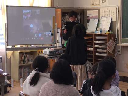 本日は、3、4年生が冷田小学校の3、4年生とオンラインでの交流会を行いました。