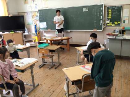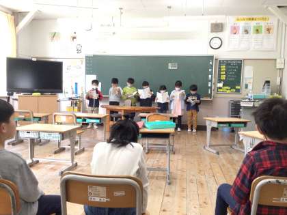 1枚目の写真は、2日の音読発表会です。「風のゆうびんやさん」のお話を1年生とともえのみんなを招いて堂々と練習の成果を発表していました。