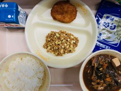 5月19日給食 公開日 2023/05/19 更新日 2023/05/19 お知らせ 本日の給食は、『ごはん、牛乳、チーズ納豆、えびカツ、あおさ汁、手巻きのり』です。とても美味しかったです。ごちそうさまでした!
